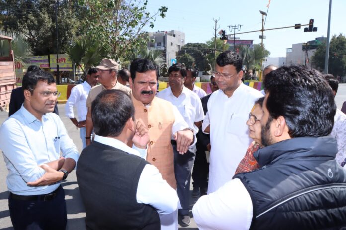 इंदौर | मध्यप्रदेश के मुख्यमंत्री श्री शिवराज सिंह चौहान के नेतृत्व में इंदौर विकास प्राधिकरण शहर को एक और सौगात देने जा रहा है। आगामी 13 फरवरी को माननीय मुख्यमंत्री के कर कमलों द्वारा फूटी कोठी चौराहा पर बनाने वाले 6 लेन फ्लाय ओवर का भूमि पूजन किया जाना है। कार्यक्रम की तैयारियों का जायजा लेने, आज इंदौर विकास प्राधिकरण अध्यक्ष श्री जयपाल सिंह चावड़ा फूटी कोठी चौराहा पहुँचे। कार्यक्रम स्थल का निरीक्षण कर श्री चावड़ा ने उपस्थित अधिकारियों को उचित दिशा निर्देश दिए।