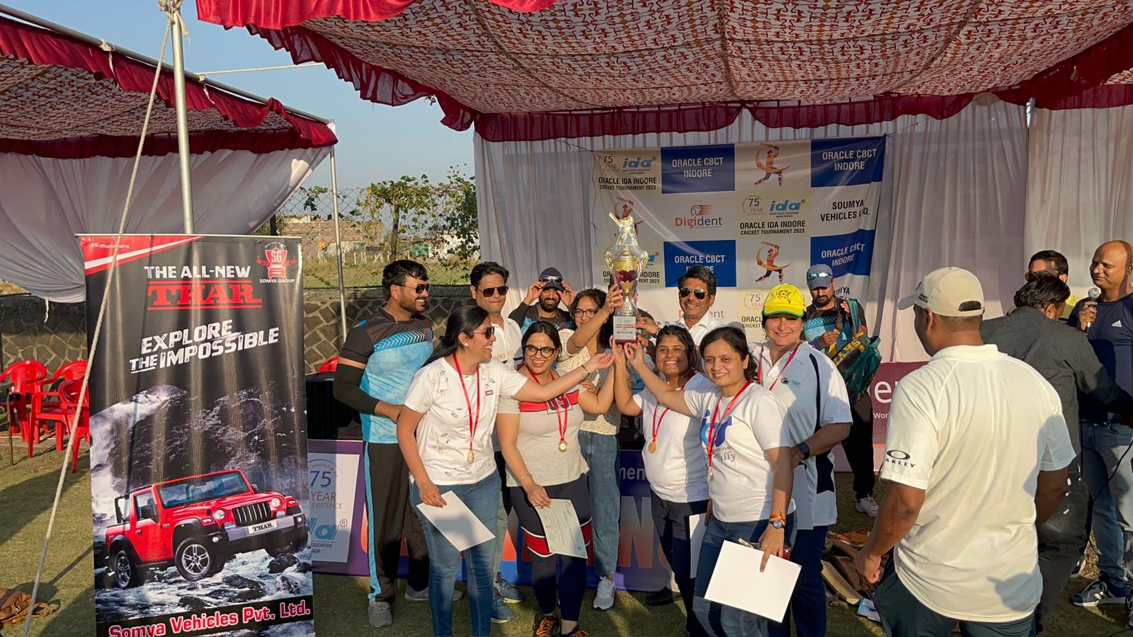 इंदौर। ओरेकल आईडीए इंदौर क्रिकेट टूर्नामेंट आईडीए इंदौर शाखा द्वारा इंदौर के सभी दंत चिकित्सकों के लिए आयोजित किया गया। रमेश भाटिया क्रिकेट फाउंडेशन में आयोजित टूर्नामेंट में इंडेक्स इंस्टीट्यूट आफ डेंटल साइंस (आईआईडीएस) की गर्ल्स टीम ने जीत हासिल की। अतिथियों द्वारा विजेता टीम को विनर ट्रॉफी प्रदान की गई। मैच में डॉ. कृतिका मिश्रा प्लेयर ऑफ द मैच रहीं। इंडेक्स बॅायज टीम को सिल्वर और रनर अप ट्रॉफी मिली। आईआईडीएस की टीम अब राज्य स्तरीय क्रिकेट टूर्नामेंट में आईडीए इंदौर का प्रतिनिधित्व करेगी। डॉ. कृतिका मिश्रा और डॉ. मृणाली चड्ढा के नेतृत्व वाली इंडेक्स गर्ल्स टीम और डॉ. नवनीत अग्रवाल और डॉ. वरुण सोनवणे के नेतृत्व वाली इंडेक्स बॉयज़ टीम ने आईआईडीएस का प्रतिनिधित्व किया।