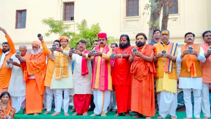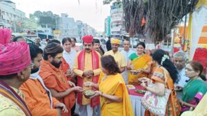 इंदौर ।ऊँ सूर्याय नमः ,ऊँ भास्कराय नमः मंत्रों के साथ हिंदू नव वर्ष गुड़ी पड़वा पर शहर की हृदय स्थली राजवाड़ा पर सूर्य को अर्घ्य देकर भगवान सूर्य की आराधना की गई । संस्कार भारती जिला इंदौर ,लोक संस्कृति मंच एवं नगर निगम इंदौर के तत्वाधान विक्रम संवत 2080, 22 मार्च 2023 को प्रातः 5:30 बजे से आरंभ हुए इस आयोजन में शहर के संतो एवं गणमान्य नागरिको ने अपनी उपस्थिति दर्ज कराई।