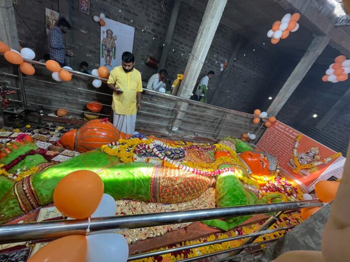 इंदौर, । हनुमान प्राकट्य महोत्सव के उपलक्ष्य में गुरुवार सुबह अग्रवाल पब्लिक स्कूल के पास स्थित लेटे हनुमान मंदिर पर शिव संकल्प परिवार पालदा की ओर से शिव महाराज पाटिल के सहयोग से सुंदरकांड पाठ का आयोजन किया गया। इस अवसर पर शहर के विभिन्न रामायण मंडलों के श्रद्धालु भी उपस्थित थे। लेटे हनुमानजी की पूजा एवं अभिषेक के बाद 56 भोग सहित विभिन्न अनुष्ठान भी हुए। पिछले 26 वर्षों से यहां प्रति वर्ष लेटे हनुमानजी की पूजा-अर्चना कर महाआरती एवं भंडारे का नियमित आयोजन शिव महाराज पाटिल द्वारा किया जा रहा है। अब यहां मंदिर के निर्माण की योजना बनाई गई है। इस तरह की प्रतिमा प्रयागराज स्थित लेटे हनुमान मंदिर में भी है। करीब 26 वर्ष पहले यहां कुछ लोग एक ट्रक में रखकर मूर्ति ले जाते समय ट्रक के खराब हो जाने से इस मूर्ति को यहीं पर छोड़कर चले गए थे, जिनका अभी तक कोई अता-पता नहीं है। तब इस मूर्ति को शिव महाराज पाटिल सहित कुछ भक्तों ने एक मंदिर में स्थापित किया है, जब से ही यहां प्रतिवर्ष लेटे हनुमानजी की पूजा-अर्चना, महाआरती एवं भंडारे का नियमित आयोजन किया जा रहा है।
