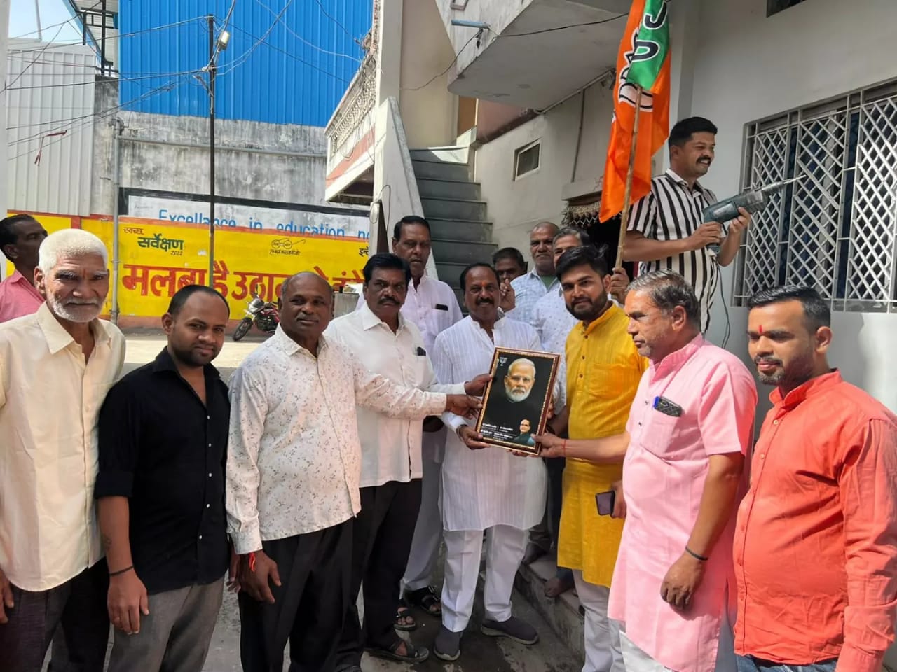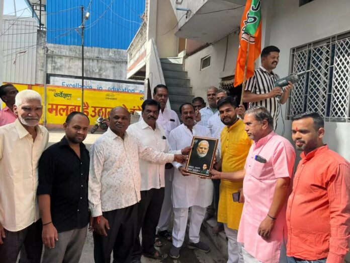 इंदौर।भारतीय जनता पार्टी के स्थापना दिवस के अवसर पर आज वार्ड 05 के बूथ अध्यक्षों के घर जाकर वार्ड के पार्षद निरंजन सिंह चौहान, गुड्डू ने हर हर मोदी, घर घर मोदी अभियान के तहत प्रधानमंत्री श्री नरेन्द्र मोदी जी की तस्वीर और भाजपा का ध्वज लगाया। साथ में वार्ड संयोजक अशोक उपाध्याय जी सहित अन्य पदाधिकारी और कार्यकर्ता साथ मे रहे।