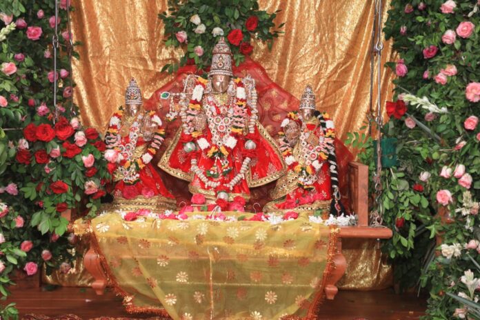 मंदिर समिति के हरिकिशन साबू, मनोहर सोनी, भगवानदास हेड़ा एवं हरकचंद बियानी ने बताया कि देर रात्रि को स्वामी जी श्री केशवाचार्य जी की चरण सेवा की गई जिसमें भक्तों के द्वारा शुद्ध जल केसर कुमकुम एवं फूलों द्वारा स्वामी जी के चरण पखारे गए तत्पश्चात आरती की गई एवं गोष्टी प्रसाद का वितरण हुआ। वहीं गुरुवार शाम को सुंदर नयनाभिराम झूले में प्रभु वेंकटेश श्रीदेवी भूदेवी के साथ विराजे भक्तों ने झूले के भजनों के साथ प्रभु को झूला झुलाया। इस अवसर पर सरला हेड़ा ,सुभद्रा साबू, सोयल साबू, अशोक अग्रवाल ,सत्यनारायण अग्रवाल, नितिन तापड़िया, नारायण मालाणी हरिकिशन साबू उपस्थित थे
