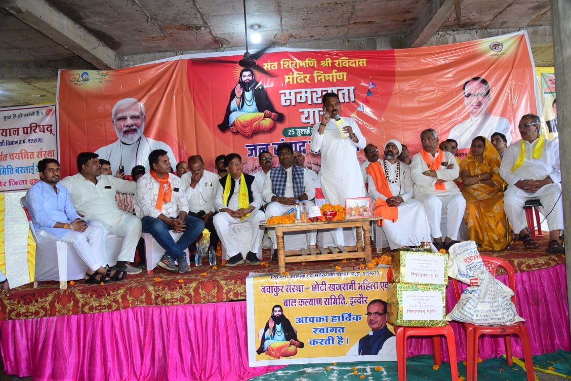 संत शिरोमणि गुरु रविदास मंदिर निर्माण के उद्देश्य से निकली समरसता यात्रा ने इंदौर में बनाया भक्ति और आस्था का अद्भुत वातावरण