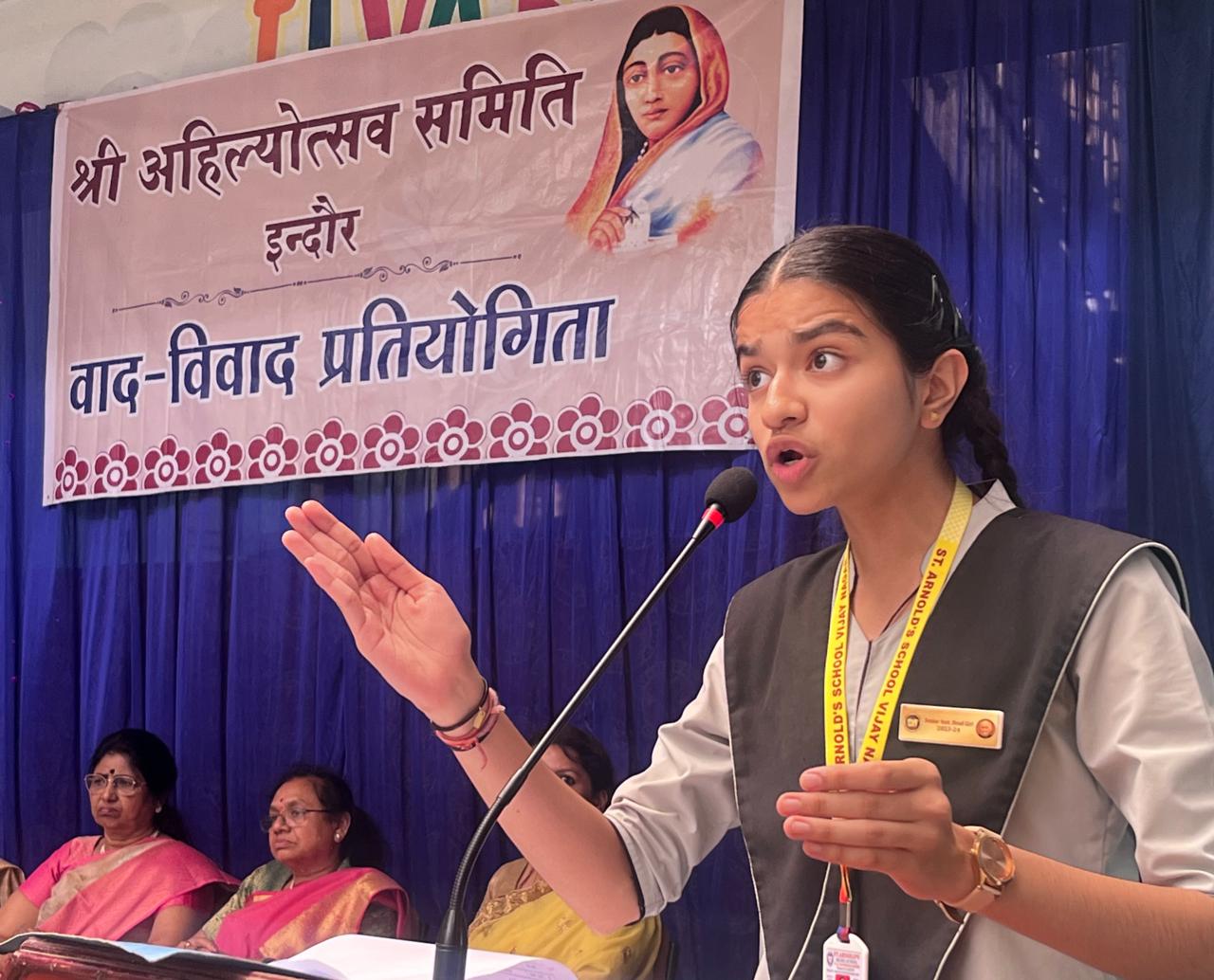 अहिल्या उत्सव समिति के कार्यकारी अध्यक्ष अशोक डागा एवं सचिव सरयू वाघमारे ने बताया कि आज इल्वा स्कूल परिसर में आयोजित प्रतियोगिता में 30 स्कूलों ने भाग लिया अतिथि के रूप में शासकीय महाधिवक्ता अभिजीत सिंह राठौड़ एवं संजय जोशी शामिल हुए ईल्वा ट्रस्ट के प्रमुख शिव शंकर गर्ग भी इसमें शामिल हुए अभिजीत सिंह राठौड़ ने कहा कि वक्ता को अच्छे शब्दों के साथ अपनी बात रखना चाहिए भाषा में उत्कृष्टता जरूरी है । अतिथियों का स्वागत ज्योति तोमर, माला सिंह ठाकुर, विनीता धर्म ,सौरभ खंडेलवाल, मोनिका सबनीश, प्रतीक मित्तल, वीणा वर्मा, उषा दवे ने किया।