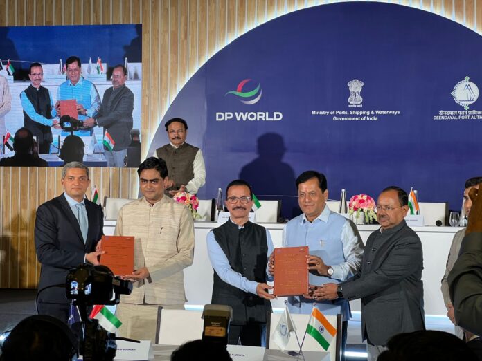 भारत, 25 अगस्त 2023: रियायती समझौता समारोह में माननीय केंद्रीय बंदरगाह, जहाजरानी और जलमार्ग और आयुष मंत्री श्री सर्बानंद सोनोवाल, महामहिम सुल्तान अहमद बिन सुलेयम, ग्रुप चेयरमैन और सीईओ, डीपी वर्ल्ड; श्री श्रीपाद नाइक, माननीय बंदरगाह, जहाजरानी और जलमार्ग और पर्यटन राज्य मंत्री; श्री शांतनु ठाकुर, माननीय बंदरगाह, जहाजरानी और जलमार्ग राज्य मंत्री; श्री टी.के. रामचन्द्रन, सरकार के सचिव और भारत के, MoPSW और DP वर्ल्ड के अन्य वरिष्ठ अधिकारी की गरिमामयी उपस्थिति रही; । समझौते पर 25 अगस्त 2023 को नई दिल्ली में श्री एस.के. मेहता, आईएफएस, अध्यक्ष, दीनदयाल पोर्ट अथॉरिटी और श्री रिजवान सूमर, एमडी और सीईओ, डीपी वर्ल्ड एससीओ और एमईएनए के बीच हस्ताक्षर किये गये।