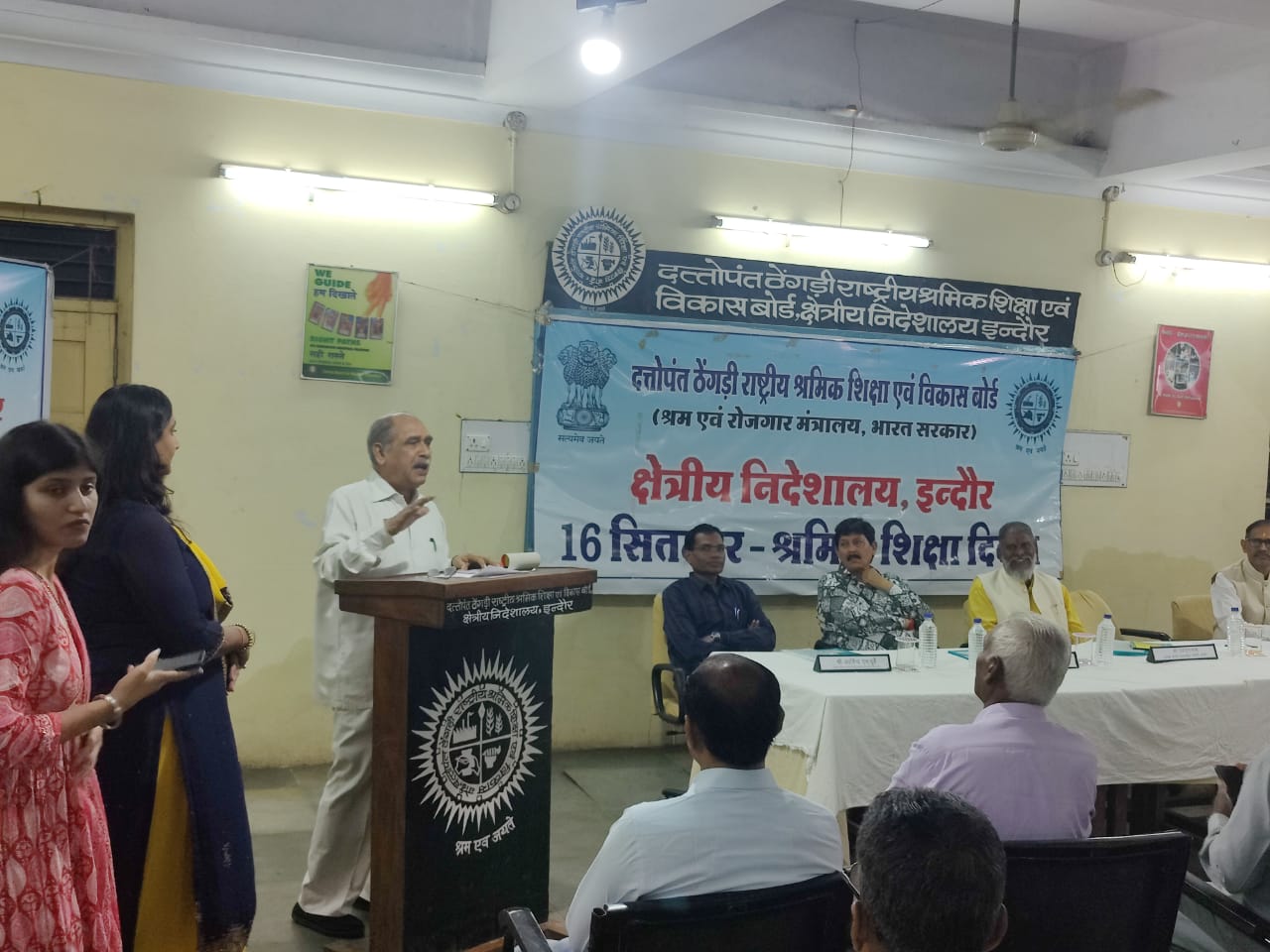 इन्दौर। दत्तोपंत ठेंगड़ी राष्ट्रीय श्रमिक शिक्षा एवम् विकास बोर्ड -श्रम एवं रोज़गार मंत्रालय भारत सरकार क्षेत्रीय निदेशालय नंदा नगर इंदौर में श्रमिक शिक्षा दिवस मनाया गया जिसमें श्री रमेश मेंदोला विधायक क्षेत्र क्रमांक २ मुख्य अतिथि के रूप में सामिल हुए ।कार्यक्रम की अध्यक्षता लक्ष्मीनारायण मारु