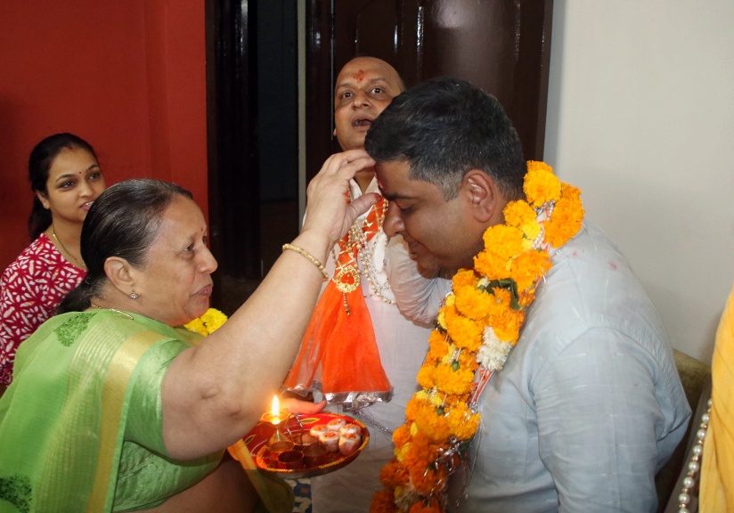 दीपक जोशी (पिंटू) को अग्रवाल बंधुओं का मिला साथ, घर-घर तिलक लगाकर की आरती, जीत का दिया आशीर्वा