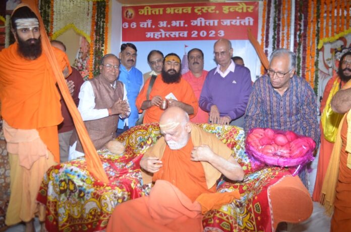 इंदौर, । गीता के संदेश हमें मार्गदर्शन करते हैं कि समाज और राष्ट्र के प्रति अपने कर्तव्यों का पालन हम कब, क्यों और कैसे करें… गीता के संदेश हमें कर्म योगी बनाने की ओर प्रवृत्त करते हैं। गीता उस अनमोल खजाने की तरह है, जिसमें जीवन को सदगुणों से अलंकृत करने के अनेक अलमोल रत्न भरे पड़े हैं। कर्तव्य के बोध और जीवन को सकारात्मक ढंग से जीने का संदेश गीता के श्लोकों में मौजूद हैं। गीता पुरुषार्थ की पक्षधर है, पलायन की नहीं। सृष्टि में सब कुछ परमात्मा की कृपा से ही संभव है। जीव, जगत और जगदीश्वर- तीनों ही रूपों में भगवान का अस्तित्व मौजूद है।