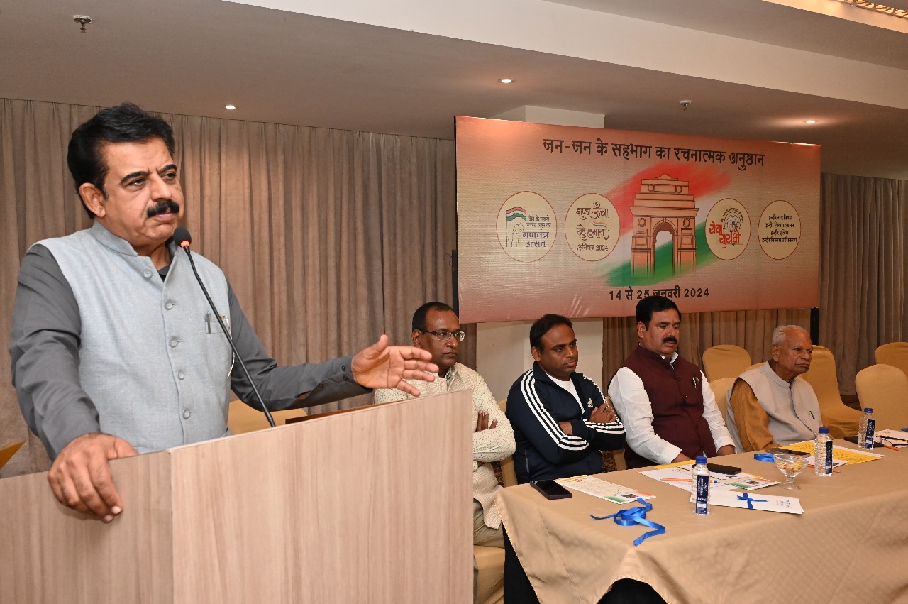 अध्यक्षीय उदबोधन में वरिष्ठ पत्रकार कृष्णकुमार अष्ठाना ने कहा कि भारत ने विश्वभर मे अपना झण्डा गाड़ दिया है, अब यह अभियान और ऊँचाई हासिल करेगा। भाजपा नेता गोविंद मालू ने कहा कि इस अभियान की आभा कम नही होना चाहिए। प्रेस क्लब अध्यक्ष अरविंद तिवारी ने कहा कि सेवा सुरभि पर आज पूरा बोझ आ गया है, अतः सामाजिक संस्थाएं सहयोग देकर इस बोझ को कम करे। पुलिस आयुक्त मकरसंद देउस्कर एवं विभाग कीओर से उनकी प्रतिनिधि के रूप में आई अतिरिक्त पुलिस उपायुक्त सीमा अलावा ने कहा कि अभियान में एनसीसी एवं एनएसएस के छात्रों की रैली भी निकाली जाएगी और भारतीय संविधान के पोस्टर भी लगाए जाएंगे, ताकि हमारी नई पौध अपने संविधान को जान सके। अहिल्या लायब्रेरी की प्रबंधक लिली डाबर ने कहा कि वे अभियान के दौरान रीगल चौराहा स्थित अहिल्या लायब्रेरी में भारतीय संविधान की प्रति छात्रों और बच्चों के अवलोकनार्थ रखेंगे, ताकि बच्चे भी देख सकतें कि हमारा संविधान कैसा है। समीर शर्मा ने कहा कि इस अभियान मे युवाओ की भागीदारी और बढ़ना चाहिए। अजीत नारंग ने कहा मालवा चैंबर्स ऑफ कॉमर्स द्वारा 25 जनवरी को राष्ट्रीय गीतों पर आधारित शाम का आयोजन किया जाएगा। स्टेट प्रेस क्लब के अध्यक्ष प्रवीण खारीवाल ने कहा कि अभिनव कला समाज में भी कार्यक्रम होंगे। राजीव झालानी ने कहा कि हम भी बड़ा आयोजन करेगे, जिसमे कॉलेज छात्रों की संख्या अधिक होगी। बैठक में श्रीनिवास कुटुंबले, शहर काजी डॉ. इशरत अली, पदमश्री भालू मोढे, शिवाजी मोहिते, अशोक कोठारी, मोहन अग्रवाल, अतुल सेठ, अनिल भंडारी, अरविंद जायसवाल, रजनी भंडारी, शोभा चौधरी, प्रमोद डफरिया सहित बड़ी संख्या मे विभिन्न सामाजिक, शैक्षणिक संस्थाओ के प्रतिनिधि उपस्थित थे। संचालन संस्कॄति कर्मी संजय पटेल ने किया। अतिथियों का स्वागत संस्था के संयोजक ओमप्रकाश नरेडा, कमल कलवानी अरविंद जायसवाल, अनिल गोयल गोविंद मंगल आदि ने किया। इस मौके पर अतिथियों ने सेवा सुरभि द्वारा प्रकाशित वर्ष 2024 के कैलेंडर ‘काल दर्शक’ का विमोचन भी किया।