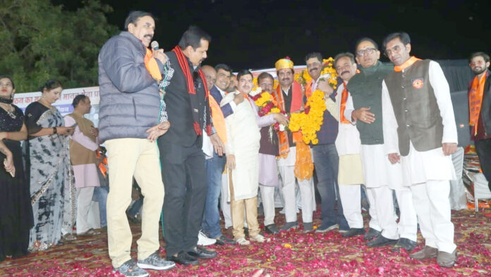 संगठन के अध्यक्ष सत्येन्द्र शर्मा एवं मीडिया प्रभारी पं. नीलाभ सुगंधी ने बताया कि भजन गायक कपिल कुमावत के भजनों ने भक्तों को मंत्रमुग्ध बनाए रखा। निरामय सेवा संजीवन द्वारा संचालित सेवा गतिविधियों की जानकारी अध्यक्ष पं. राजेन्द्र शर्मा ने दी। इस मौके पर बालीपुर धाम के संत योगेश महाराज एवं महामंडलेश्वर रामगोपालदास महाराज के सानिध्य में पं. योगेन्द्र महंत, उद्योगपति पं. अनुपम तिवारी, पं. अटल शर्मा, पं. संजय मिश्रा, पं. चंद्रमोहन दुबे, पं. अनुप शुक्ला, पं. गौतम मारवाल, पं. महेश शर्मा, पं. कमल शर्मा, एमआईसी सदस्य पं. अभिषेक बबलू शर्मा, पं. अश्विनी शुक्ल, पं. मनीष शर्मा मामा एवं राधेश्याम शर्मा गुरूजी का स्वागत सम्मान भी किया गया। संगठन की ओर से पं. नवीन अग्निहोत्री, पं. ललित शर्मा, पं. राकेश तिवारी पं. पवन मिश्रा, पं. राजेन्द्र शर्मा, पं. सचिन शर्मा, पं. सरोज कौशिक, पं. अशोक शर्मा, पं. रामचंद्र दुबे, पं. मुकेश शर्मा, पं. सुनील मिश्रा, पं. संजीव शर्मा, पं. हरीश शर्मा, पं. कैलाश व्यास आदि ने सभी मेहमानों को सतरंगी साफा पहनाकर सम्मानित किया। कार्यक्रम में पूर्व महापौर डॉ. उमाशशि शर्मा, पार्षद श्रीमती संगीता जोशी भी उपस्थित थे, जिनका स्वागत श्रीमती कलादेवी शर्मा, संगीता शर्मा, मोनिका दुबे, उषा शर्मा, ममता शर्मा, उषा शर्मा बेबीदीदी, अनीता शर्मा, प्रियंका वेदी, रश्मि सुगंधी एवं सीमा ओझा ने किया।