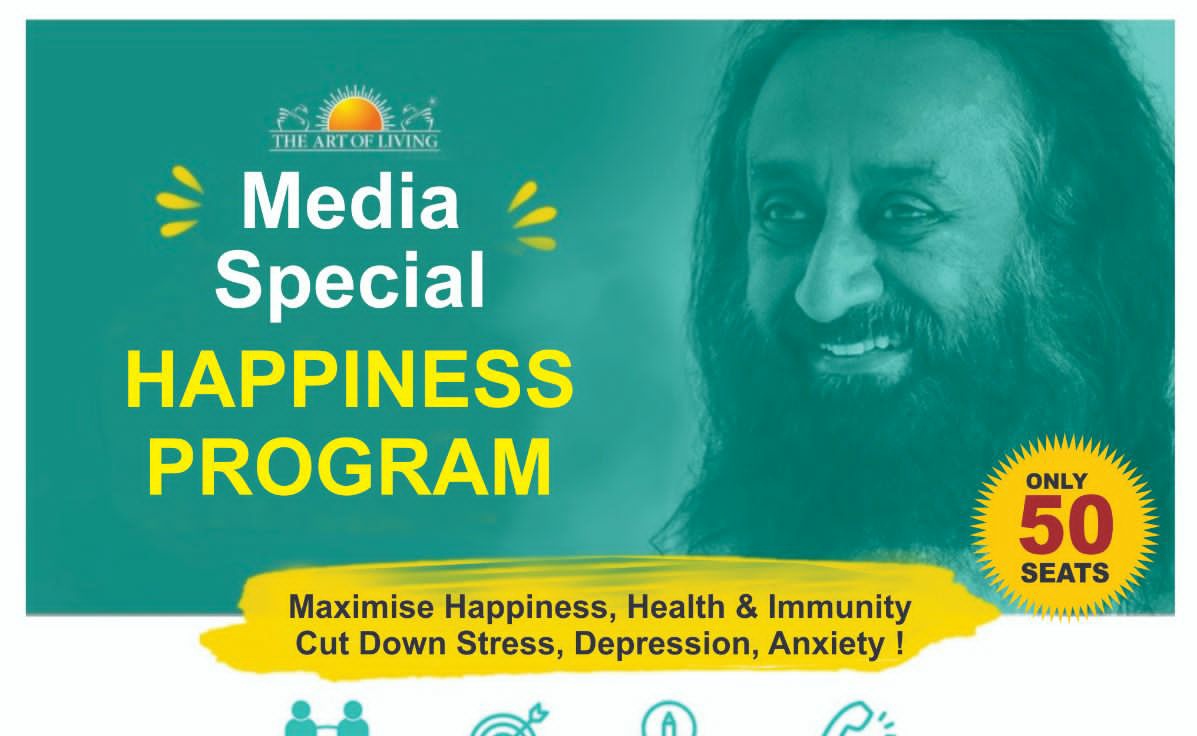 इंदौर। मीडिया कर्मियों हेतु आज से आर्ट ऑफ लिविंग का हैप्पीनेस प्रोग्राम वरिष्ठ अंतरराष्ट्रीय शिक्षक मनोज राव जी साथ अभिनव कला समाज गांधी हॉल मेंश्रीश्री की संस्था आर्ट ऑफ़ लिविंग द्वारा शहर के मीडिया कर्मियों हेतु विशेष तीन दिवसीय मीडिया स्पेशल हैप्पीनेस प्रोग्राम 23 से 25 फरवरी को गांधी हॉल स्थित अभिनव कला समाज हॉल में शाम को 4 बजे से आयोजित किया गया है जिसमे आर्ट ऑफ लिविंग के वरिष्ठ अंतराष्ट्रीय प्रशिक्षक श्री मनोज राव जीवन जीने की कला के साथ श्वास की अद्भुत तकनीक सुदर्शन क्रिया सिखाएंगे ।