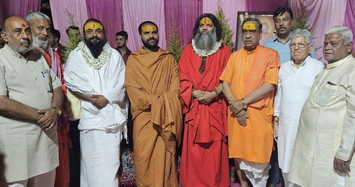 विमानतल मार्ग स्थित श्री श्रीविद्याधाम पर महारूद्र महायज्ञ के आयोजक आचार्यों का सम्मान