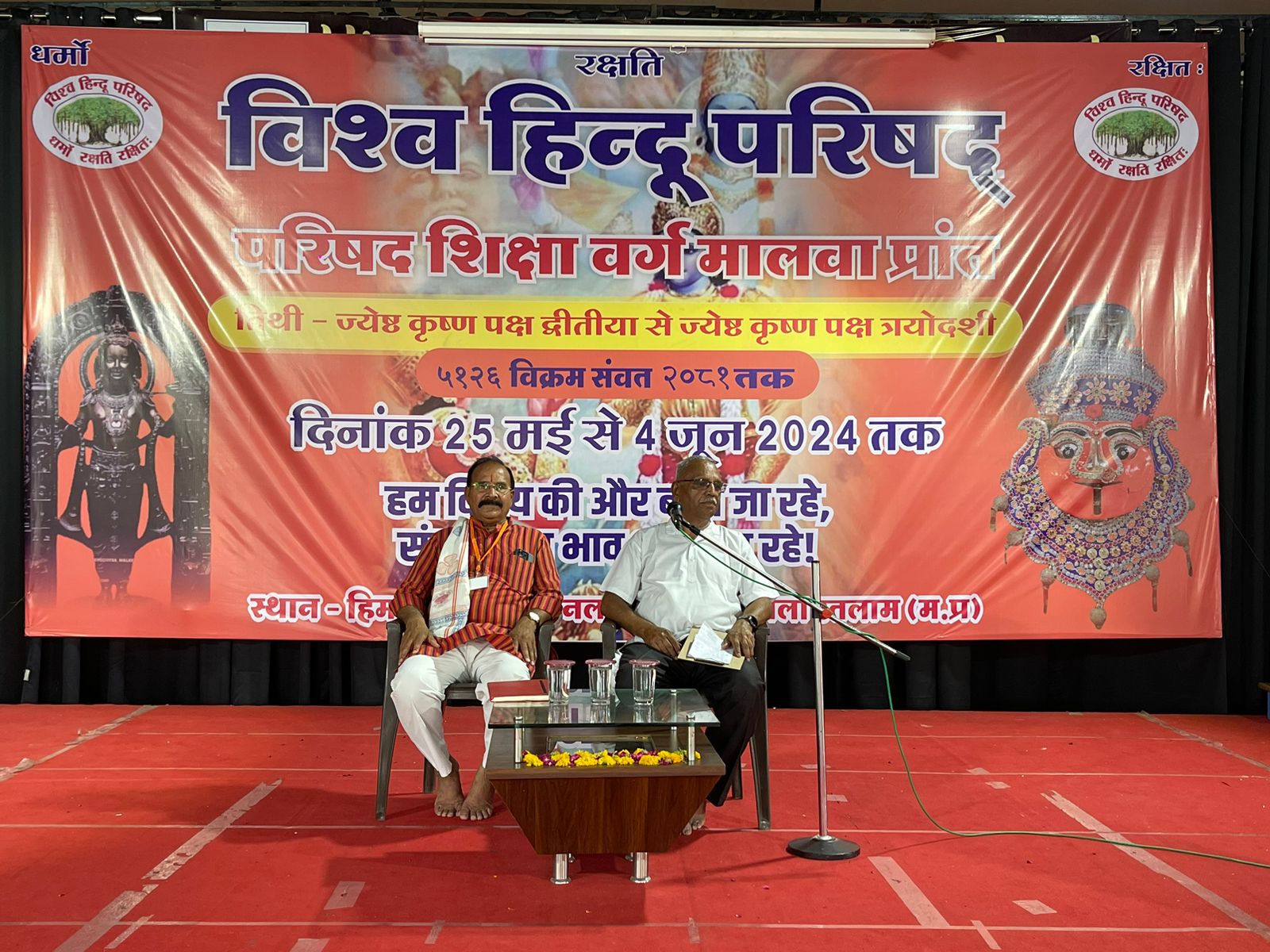 रतलाम। विश्व हिन्दू परिषद् के शिक्षा वर्ग में पिछली 25 मई से शिक्षा ले रहे 100 से अधिक कार्यकर्ताओं को आज कुटुम्बप्रबोधन में के विषय पर संबोधित करते हुए राष्ट्रीय स्वयं सेवक संघ के   प्रान्त संघचालक   प्रकाश शास्त्री ने कहा कि हमारी पारिवारिक व्यवस्था कैसी थी और हम विदेशी संस्कृति को अपना कर अपने परिवार को कैसे नष्ट कर रहे है, हमारी हिन्दू कुटुम्ब संस्कृति में वसुधैव कुटुम्बकम् की संस्कृति को मानते है।