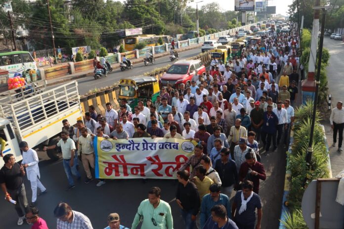 शनिवार को इंदौर प्रेस क्लब के बैनर तले शहर की सामाजिक, साहित्यिक एवं सांस्कृतिक संस्थाओं ने अपने मौन के जरिए आक्रोश की अभिव्यक्ति की। इंदौर प्रेस क्लब से रीगल तीराहे स्थित गांधी प्रतिमा तक विशाल मौन रैली निकाली गई। इस रैली के जरिए बढ़ते अपराधों का विरोध करने के साथ प्रशासन को यह संदेश देना था कि वे कानून व्यवस्था की स्थिति मजबूत करे ताकि आम शहर खुद को सुरक्षित महसूस कर सके। मौन रैली के समापन पर मुख्यमंत्री के नाम ज्ञापन एक ज्ञापन माहत्मा गांधी चरणों में अर्पित किया गया।