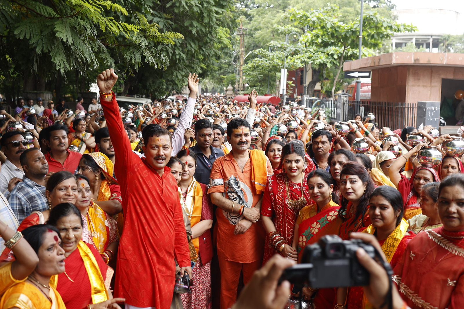 गांधी हाल से राजबाड़ा तक विस क्षेत्र क्र. 3 की मातृशक्तियों ने निकाली कलश-कावड़ यात्रा
