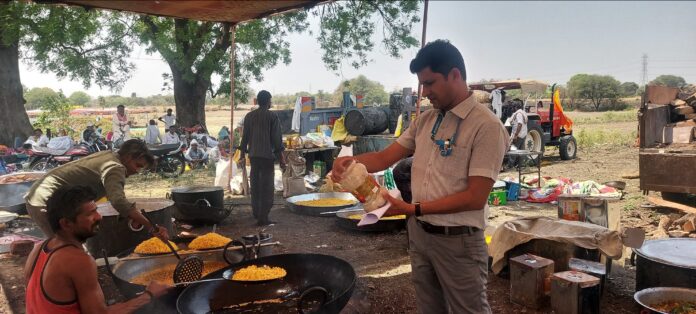 उज्जैन 26 अप्रैल । कलेक्टर श्री रौशन कुमार सिंह के निर्देशानुसार पंचक्रोशी यात्रा 2025 में यात्रा मार्ग एवं पड़ाव स्थल पर श्रद्धालुओं/यात्रियों को निःशुल्क वितरित होने वाले खाद्य पदार्थों एवं विक्रय होने वाली खाद्य सामग्रियों की गुणवत्ता जांच के लिए खाद्य सुरक्षा अधिकारियों द्वारा पंचक्रोशी मार्ग एवं पड़ाव स्थलों पर संचालित भोजन प्रसादी/भण्डारों एवं दुकानों आदि की जांच की जा रही है। खाद्य सुरक्षा अधिकारी द्वारा खाद्य सामग्री निर्माण/संग्रहण एवं वितरण में विशेष सावधानी बरतने के निर्देश दिये गये एवं विभिन्न खाद्य सामग्रियों के नमूनें जांच के लिए लिये गये। खाद्य सुरक्षा अधिकारियों द्वारा उण्डासा में जांच कर – अमरनाथ भक्त मण्डल, चौधरी समाज ग्राम जैथल, उज्जैनी सेवा समिति, दिलीप बिल्डकॉन लिमिटेड, मनकामनेश्वर सेवा समिति, फ्रेंड्स ग्रुप उन्हेल, महाकाल स्टोन क्रशर, सांची पांईट द्वारा वितरित/विक्रय की जा रही खाद्य सामग्री की जांच कर नमूनें जांच के लिए लिये गये।