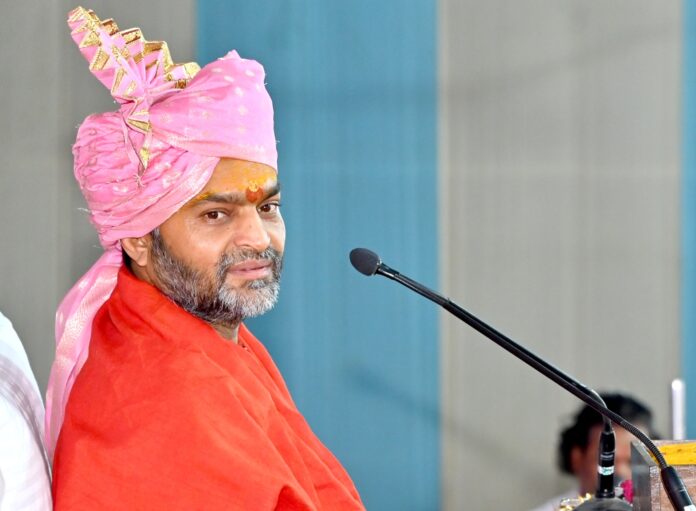 मंच पर विराजमान श्री नर्मदानंद जी महाराज, श्री राम बाबा महाराज त्यागी जी, श्री महंत लालनाथजी योगी का स्वागत सम्मान श्री बद्रीनारायण सेवा ट्रस्ट अध्यक्ष डॉ. राजेन्द्र शर्मा, नवनीत सोनी, सत्यनारायण पालीवाल द्वारा किया गया।