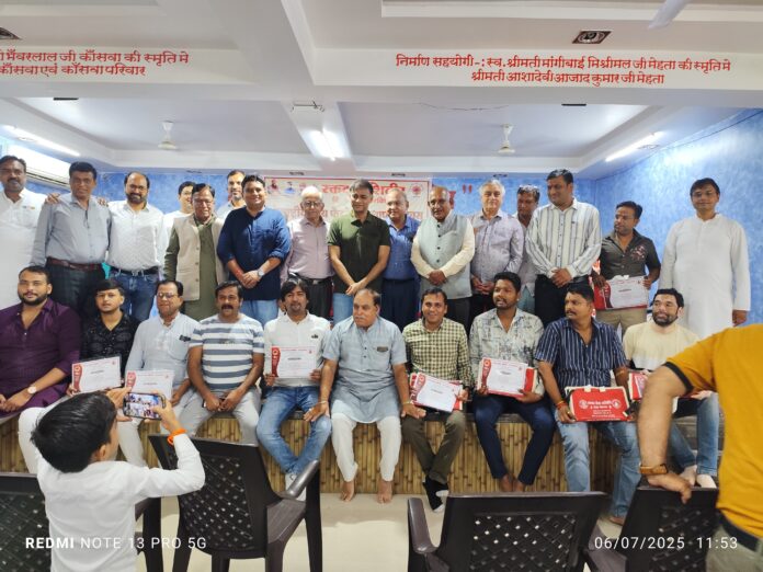 कार्यक्रम को विशिष्ट अतिथि डॉ अजय जैन, डॉ बी एल तापड़िया, उद्योगपति वीरेंद्र पोरवाल, पूर्व महापौर शैलेंद्र डागा, समाजसेवी गोविंद काकानी ने भी सम्बोधित करते हुए अपने आशीर्वाचन दिए ।