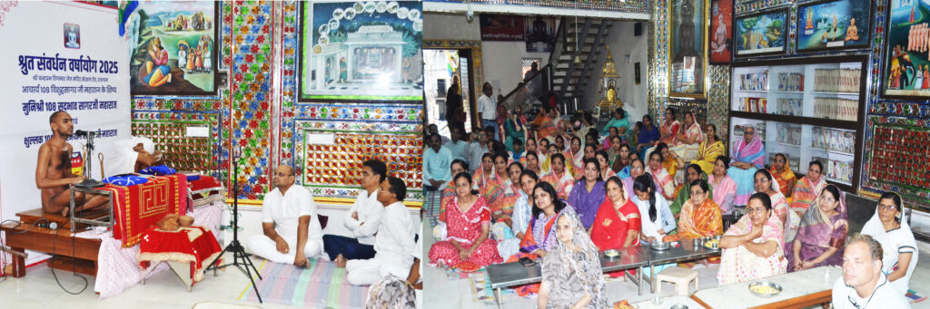 रतलाम। श्रुति संवर्धन वर्षा योग 20 25,श्री चंद्रप्रभ दिगंबर जैन मंदिर स्टेशन रोड, रतलाम आचार्य 108 विशुद्ध सागर जी म. सा. के शिष्य मुनि श्री 108 सद्भाव सागर जी म.सा. एवं क्षुल्लक 105 श्री परम योग सागर जी म.सा. द्वारा व्याख्यान दिया जा रहा है इसके अंतर्गत आज हम सभी के जीवन का सौभाग्य जागृत हुआ है कि हम जिन देशना सुन रहे हैं जो पुण्य का वर्धन और पाप का मर्दन करने वाली है जो बुद्धि पूर्वक कार्य होता है वह पुरुषार्थ है और जो अब बुद्धि पूर्वक कार्य होता है बिना परिश्रम के स्वाभाविक रूप से मिल जाता है वह भाग्य है।