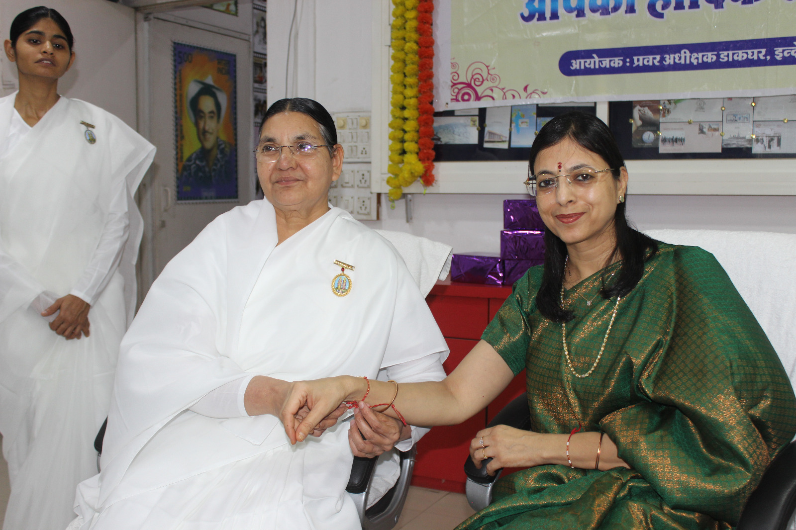 रतलाम। भारतीय डाक विभाग के पोस्टमेन स्टाफ द्वारा हमेशा से ही “डाकसेवा जनसेवा” को सार्थक सिद्ध करते हुए समयबद्ध तरीके से नियमित डाक का निपटान किया जाता रहा है | इसी तारतम्य में इस वर्ष भी रक्षाबंधन पर्व पर बहनों द्वारा अपने भाईयो को प्रेषित राखियों का सप्ताह के अन्य दिनों के साथ ही रविवार को भी विशेष कार्य कर समय पर वितरण किया गया | उनकी इस सेवा का सम्मान करते हुए आज प्रजापिता ब्रह्माकुमारी संस्थान की बहनों एवं भाईयों द्वारा पोस्टमेन स्टाफ सहित अन्य डाक कर्मियों को राखी बांधकर उनके कार्य के प्रति आभार जताते हुए हर्ष उल्लास के साथ रक्षाबंधन पर्व मनाया गया |