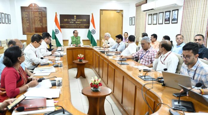 नई दिल्ली, 19 अगस्त 2025, केंद्रीय कृषि एवं किसान कल्याण और ग्रामीण विकास मंत्री श्री शिवराज सिंह चौहान ने आज कृषि भवन, नई दिल्ली में एक उच्चस्तरीय बैठक में, कृषि एवं किसान कल्याण मंत्रालय के विभिन्न पोर्टल और कॉल सेंटर पर आने वाली किसानों की शिकायतों की समीक्षा की।