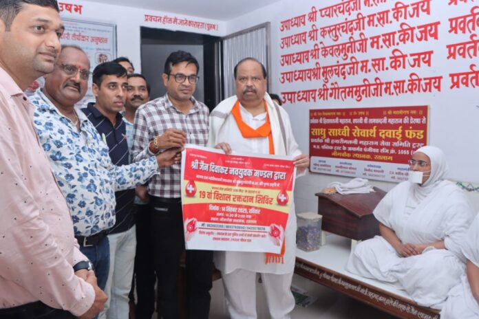 इस अवसर पर संघरत्न इंदरमल जैन, अध्यक्ष अजय खमेसरा, महेंद्र चानोदिया, अमृत कटारिया, भाजपा जिला कोषाध्यक्ष जयवंत कोठरी, विनोद बाफना, रवि बोथरा, अनिल गांधी, वीरेंद्र कटारिया, अरिहन्त बोराणा, मनीष भटेवरा, विपिन श्रीश्रीमाल, मंगल श्रीश्रीमाल, पारस मेहता, निर्मल लूणिया, मणिलाल जैन, राजकमल जैन, यश पुंगलिया आदि समाजजन उपस्थित थे।