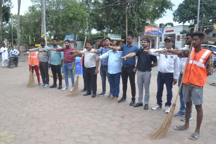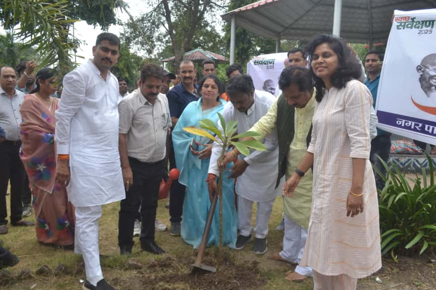 प्रभारी मंत्री कुं श्री विजय शाह ने पौधा रोपण कर किया स्वच्छता श्रमदान