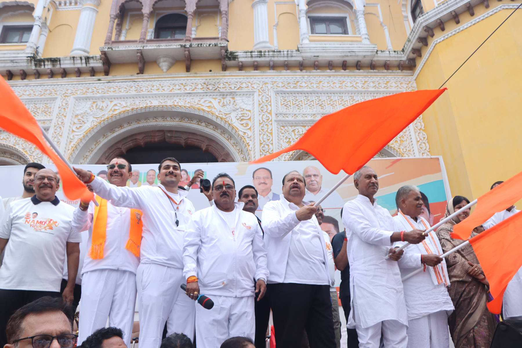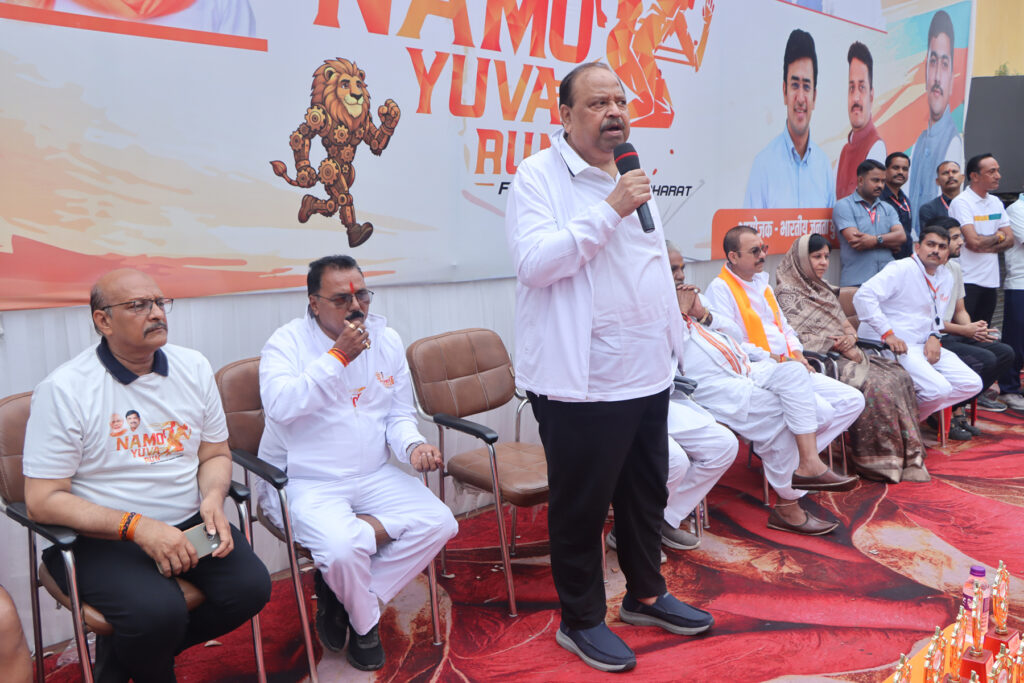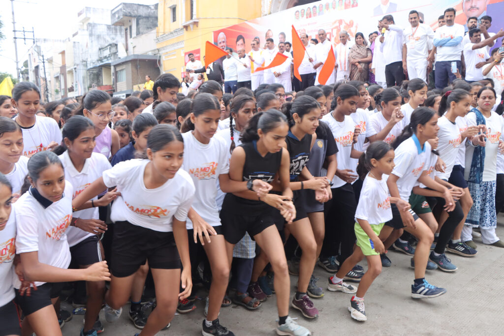 नमो युवा रन में युवा वर्ग प्रधानमंत्री श्री मोदी के चित्र वाले टी-शर्ट पहने हुए थे। हजारों की संख्या में शहर की सड़कों पर जब उनका जोश उमड़ा तो, देखने वाले देखते ही रह गए। युवा रन महलवाड़ा से डालुमोदी बाजार, गणेश देवरी, धानमंड़ी, शहर सराय, न्यू रोड़, दोबत्ती से मेहंदीकुई बालाजी होते हुए वापस महलवाड़ा पहुंचकर सम्पन्न हुई। भाजयुमो जिलाध्यक्ष विप्लव जैन ने अतिथियों का स्वागत किया। उन्होंने युवाओं को नशा त्याग कर स्वस्थ जीवन शैली अपनाने और फिट रहने का संकल्प भी दिलाया। मंत्री श्री काश्यप के साथ मंच पर राज्यसभा सांसद बंशीलाल गुर्जर, भाजपा जिलाध्यक्ष प्रदीप उपाध्याय, ग्रामीण विधायक मथुरालाल डामर, महापौर प्रहलाद पटेल, निगम अध्यक्ष मनीषा शर्मा, सेवा पखवाड़ा टोली के संयोजक निर्मल कटारिया, खेल प्रकोष्ठ के संयोजक अनुज शर्मा उपस्थित रहे। नमो युवा रन ने प्रधानमंत्री जी के फिट इंडिया अभियान से जुड़ने के संदेश को जन-जन तक पहुंचाया।