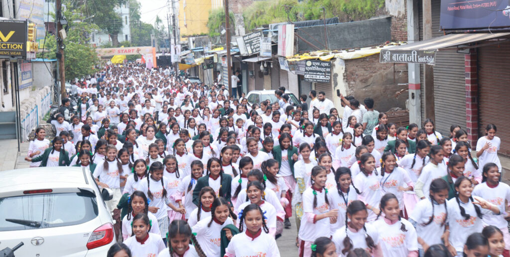 रतलाम, 21 सितम्बर। देश के यशस्वी प्रधानमंत्री श्री नरेन्द्र मोदी के 75वें जन्मदिन के उपलक्ष्य में आयोजित सेवा पखवाड़ा के तहत रविवार सुबह भारतीय जनता युवा मोर्चा ने विशाल नमो युवा रन (मैराथन) का आयोजन किया। इसमें 5000 से अधिक युवाओं ने सहभागिता कर अपने जोश, उत्साह और राष्ट्रभक्ति का परिचय दिया। मैराथन का शुभारंभ और समापन एमएसएमई मंत्री चेतन्य काश्यप के आतिथ्य में हुआ। उन्होंने इस मौके पर कहा कि युवाओं का यह जोश मोदी जी को और ताकत एवं बल देगा, इससे वे दुनिया में भारत का गौरव बढ़ाएंगे।