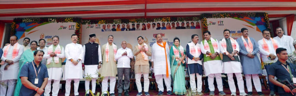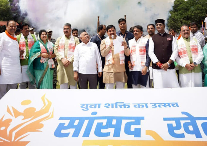 रतलाम/भोपाल, 24 सितम्बर | मुख्यमंत्री डॉ मोहन यादव ने आज यहां शासकीय सुभाष उत्कृष्ट उच्चतर माध्यमिक विद्यालय प्रांगण में भोपाल -सीहोर संसदीय क्षेत्र के सांसद खेल महोत्सव का आतिशबाजी और तालियों की गड़गड़ाहट के बीच तिरंगे गुब्बारे छोड़कर रंगारंग शुभारम्भ किया | इस भव्य आयोजन में प्रदेश भाजपा अध्यक्ष हेमंत खंडेलवाल, संगठन महामंत्री हितानन्द शर्मा, भोपाल जिले के प्रभारी एमएसएमई मंत्री चेतन्य काश्यप, स्कूल शिक्षा एवं परिवहन मंत्री राव उदयप्रताप सिंह, खेल युवा मंत्री विश्वास सारंग, पिछड़ा वर्ग कल्याण मंत्री श्रीमती कृष्णा गौर, विधायक़गण रामेश्वर शर्मा, भगवानदास सबनानी, विष्णु खत्री, सुदेश राय, महापौर श्रीमती मालती राय और भाजपा पदाधिकारियों की गरिमामयी उपस्तिथी रही. इनके आलावा बड़ी संख्या में स्कूली बच्चे एवं शिक्षकगण भी आयोजन के साक्षी रहे | खेल महोत्सव में 24 खेलों के लिए 71 हजार से अधिक प्रतिभागियों के पंजोकारण प्राप्त हुए हैं | छात्र छात्राओं ने विभिन्न खेलों की उत्कृष्ट एवं मनमोहक पस्तुतिया दी जिसकी मुख्यमंत्री सहित सभी अतिथियों ने सराहना की । इस खेल महोत्सव के आयोजक सांसद आलोक शर्मा है ।