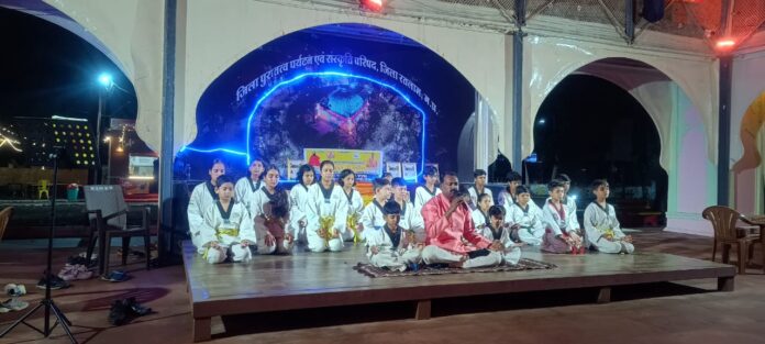 माँ कालिका शक्ति की भक्ति अराधना नवरात्रि महापर्व शनिवार की शाम विशेष तौर पर योग संगीत थैरेपी से गुलाब चक्कर गुलज़ार हुआ। आयोजन के संयोजक विशाल कुमार वर्मा द्वारा वैदिक मंत्रोच्चारण भजन के साथ कार्यक्रम संचालित करते हुए अतिथियों, समाजसेवियों का पतंजलि योग सेवा सम्मान से सम्मानित किया गया। जिसमें मुख्य अतिथि स्वरूप आयोजन के मार्गदर्शक वरिष्ठ समाजसेवी प्रकाश चंद्र व्यास, ट्रेफिक सुबेदार अनोखीलाल परमार, अश्विनी शर्मा विशेष अतिथि राष्ट्रीय स्वयंसेवक संघ के वरिष्ठ सेवक विनय मोघे, मध्यप्रदेश जन अभियान परिषद जिला समन्वयक रत्नेश विजयवर्गीय, जिला पुरातत्व विभाग के अश्विनी शुक्ला, दिव्या श्रीवास्तव, लक्ष्मण पाठक रहे विशेष तौर पर अभिषेक शर्मा द्वारा गीत संगीत स्वर लहरों पर योग, मार्शल आर्ट, मलखंभ का कुशल प्रदर्शन कर बच्चों ने सभी को अचंभित कर दिया। आयोजन का मूल उद्देश्य योग संगीत अन्य स्वास्थ्य विधाओं प्रकल्पों द्वारा अपने धर्म संस्कृति से जुड़े रहने हर घर इसे अपनाएँ इसी विचार से स्वरूप दिया। स्वच्छता पखवाड़े के तहत सीमा अग्निहोत्री के प्रयासों से गुलाब चक्कर परिसर में स्वच्छता महायज्ञ में सभी का सहयोग योगदान रहा नगर के दो मित्रों की जोड़ी विशाल कुमार वर्मा नित्येन्द्र आचार्य जो पतंजलि योगपीठ हरिद्वार जिला रतलाम योग संगीत प्रकृति संरक्षण की राह चल आज सर्व समाज जनों में सेवा परमोधर्म से जोड़ने में अपना योगदान दे रहें इनके द्वारा गुलाब चक्कर स्थित 12 घंटे नान स्टाप गीत संगीत आयोजन किया जा चुका हैं। अंत में सभी ने सामूहिक योग गरबा कर आभार सुनिल निरंजने द्वारा किया गया ।