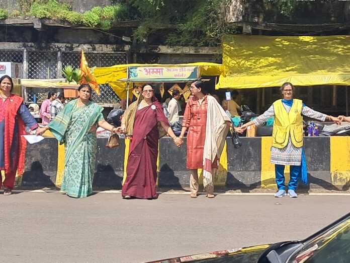 मानव श्रृंखला बनाकर यातायात नियमों का पालन करने का दिया संदेश