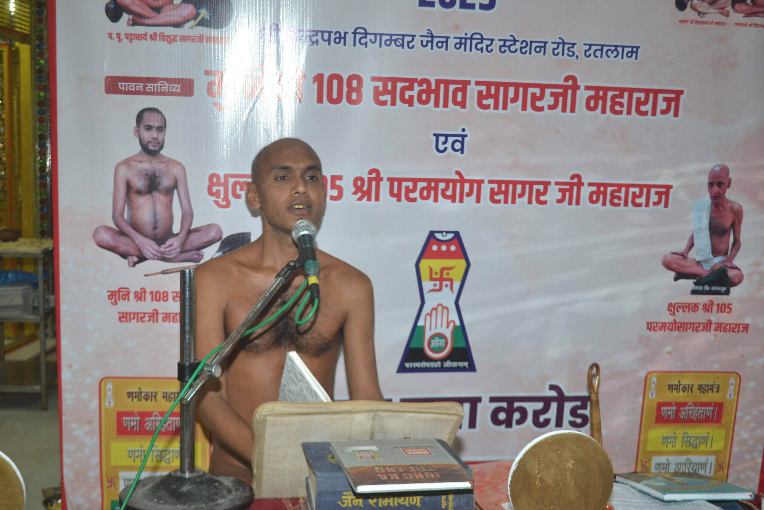 शांति धारा करने का परम सौभाग्य श्री कमल-कुसुम पापरीवाल परिवार तथा दूसरी शांति धारा करने का सौभाग्य डॉ. राजेश-प्रतिभा पाटनी परिवार को प्राप्त हुआ। कार्यक्रम में बड़ी संख्या में श्रावक-श्राविकाएं उपस्थित रहे। मंदिर में पूजन के साथ-साथ बीच-बीच में मुनिश्री सद्भाव सागर जी मसा. के प्रवचन भी हुए। उन्होंने कहा कि “भगवान महावीर का जीवन त्याग, तप और आत्मसंयम का अद्भुत उदाहरण है। उन्होंने मानवता को यह अमर संदेश दिया — ‘अहिंसा ही परम धर्म है, और आत्मविजय ही सच्ची विजय है।’”