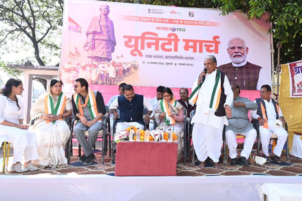 पदयात्रा के दौरान आयोजित कार्यक्रम को संबोधित करते हुए सांसद श्रीमती अनिता नागर सिंह चौहान ने कहा कि सरदार वल्लभ भाई पटेल के व्यक्तित्व से प्रभावित एवं प्रेरित होकर प्रधानमंत्री श्री नरेन्द्र मोदी जी ने सशक्त एवं आत्मनिर्भर भारत बनाने का संकल्प लिया है। इस यात्रा का उद्देश्य आत्मनिर्भर भारत बनाना है। महिलाओं को सशक्त करने के लिए कई योजनाएं संचालित है। युवाओं के विकास एवं कौशल उन्नयन के क्षेत्र में देश प्रधानमंत्री जी के नेतृत्व में अग्रसर है। शुभांरभ अवसर पर विधायक डामोर ने सभी को एक साथ रहने एवं देश के विकास के लिए एकता का परिचय देने की बात कही।
