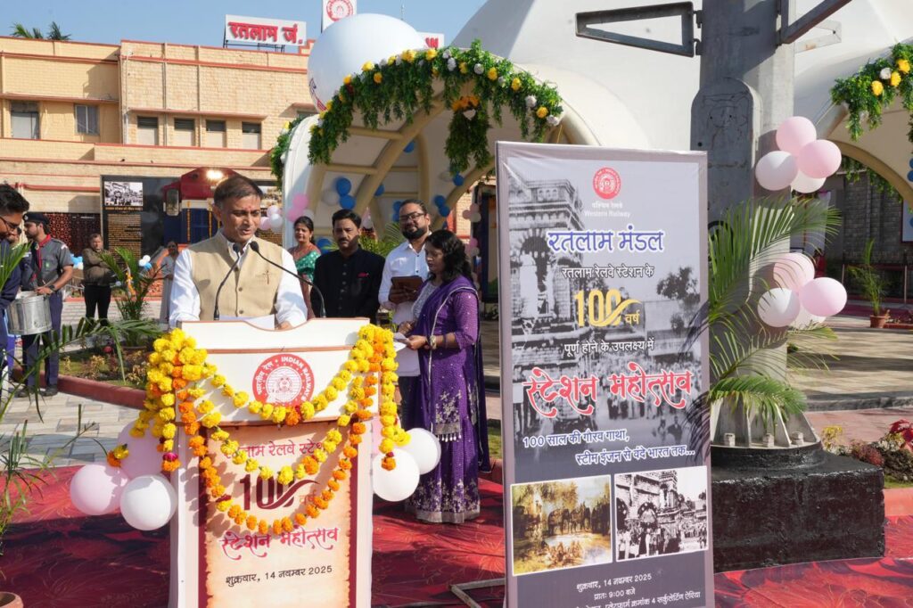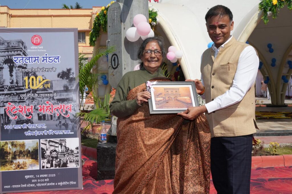 रतलाम, 14 नवम्बर। रतलाम रेलवे स्टेशन भवन के 100 वर्ष पूर्ण होने के शुभ अवसर पर स्टेशन परिसर में आज उत्साह, उल्लास और वरिष्ठ रेलकर्मियों के प्रति सम्मान के साथ भव्य स्टेन महोत्सव का आयोजन किया गया। रतलाम स्टेशन की गौरवशाली विरासत को स्मरण करते हुए अतीत की प्रेरक यादों, वर्तमान के संकल्प और भविष्य की प्रगति को समर्पित इस महोत्सव ने सभी को भावुक एवं उत्साहित किया।
