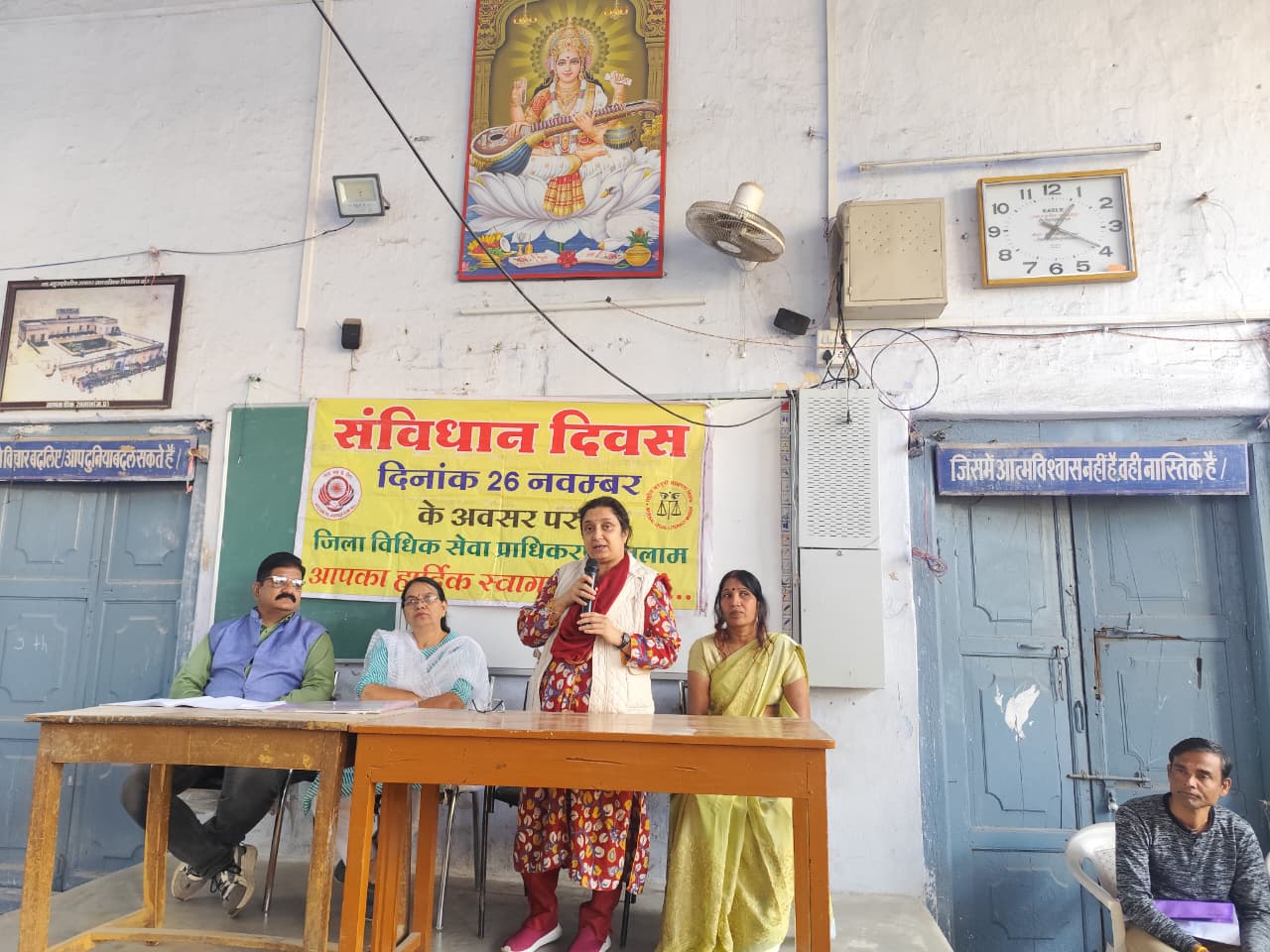 साथ ही संविधान दिवस के उपलक्ष्य में राज्य विधिक सेवा प्राधिकरण, जबलपुर के निर्देशानुसार शा. बहुउद्देशीय उच्चतर माध्यमिक विद्यालय, क्रं. 01 माणकचौक रतलाम में भारतीय संविधान के मौलिक अधिकार एवं कर्तव्य विषय पर निबंध प्रतियोगिता छात्र-छात्राओं के बीच आयोजित की गई। इस अवसर जिला विधिक सहायता अधिकारी द्वारा बच्चों एवं शिक्षकों को संविधान के बारे में विस्तार से जानकारी प्रदान की एवं जिला विधिक सेवा प्राधिकरण द्वारा संचालित समस्त योजनाओं के बारे में संक्षिप्त में बताया। उक्त कार्यक्रम में पैरालीगल वालेंटियर्स एवं विद्यालयीन स्टॉफ उपस्थित रहा।
