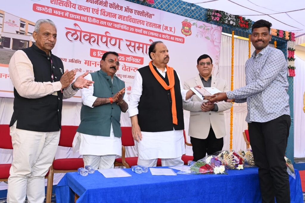 कार्यक्रम को संबोधित करते हुए जिला अध्यक्ष श्री प्रदीप उपाध्याय ने कहा कि शिक्षा के क्षेत्र में नया भवन मिलना गौरव का विषय है , मुख्यमंत्री डॉ मोहन यादव के नेतृत्व में शिक्षा के साथ ही खेल और अन्य क्षेत्रों में भी प्रगति हुई है। जनभागीदारी समिति के अध्यक्ष श्री विनोद करमचंदानी ने कहा कि भवन के संचालन हेतु 46 लाख रुपए का फर्नीचर भी प्राप्त किया गया है , उन्होंने नए तीन मंजिला भवन के लिए 14 करोड़ रुपए की लागत से निर्माण कार्य की मांग रखी। श्री करमचंदानी ने कहा कि कॉलेज के लिए एक लॉन टेनिस ग्राउंड की भी आवश्यकता है और रतलाम जिले में विश्वविद्यालय की स्थापना का सपना पूरा हो। कार्यक्रम मे कॉलेज के प्रोफेसर तथा विद्यार्थी आदि उपस्थित थे।