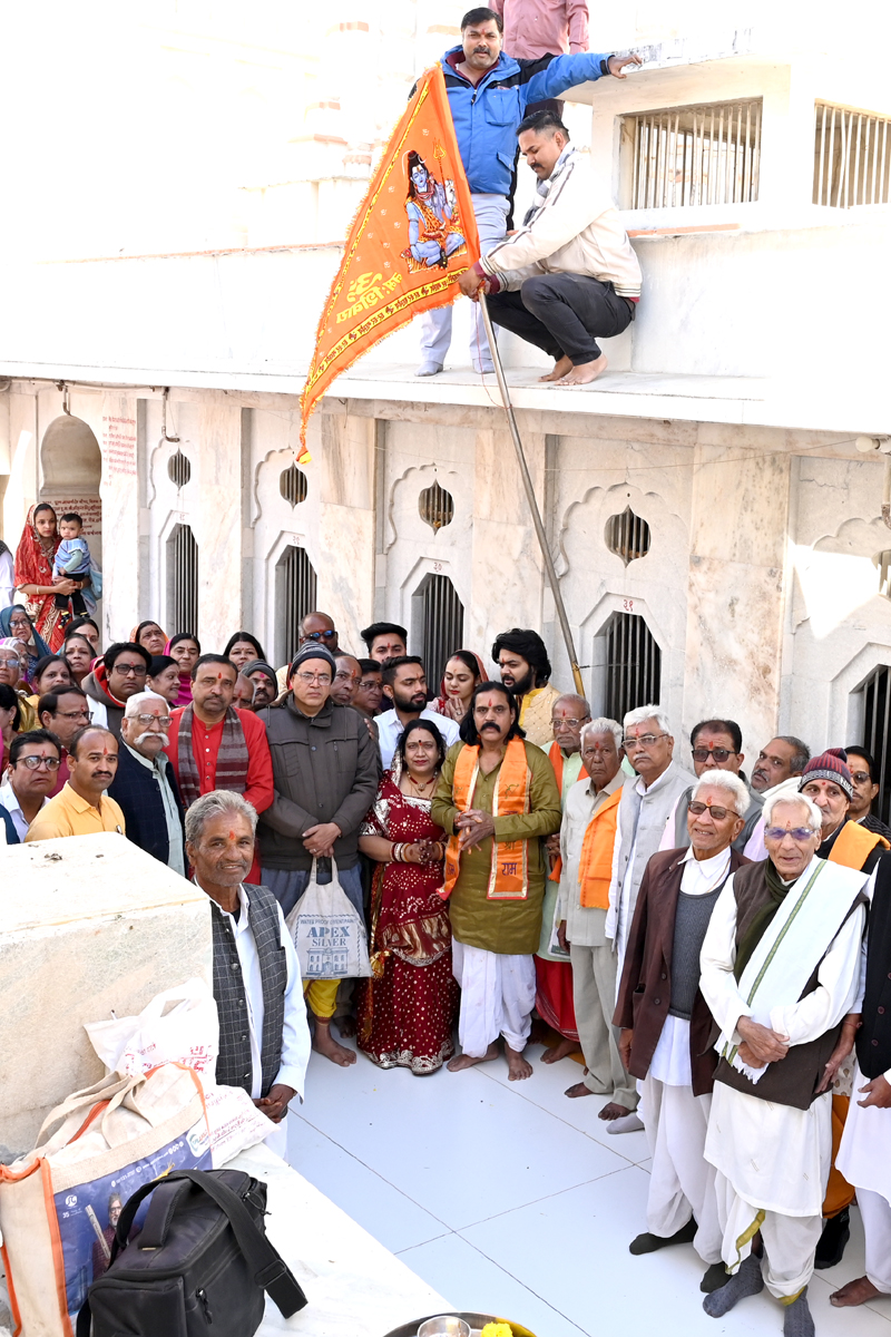 श्री सनातन धर्म सभा अध्यक्ष अनिल झालानी सहित उपस्थित धर्मालुजनों की उपस्थिति में यजमान दम्पत्ति द्वारा ध्वज की पूजन कर ध्वजारोहण किया गया । इस दौरान अध्यक्ष अनिल झालानी, पूर्व विधायक कोमलसिंह राठौर, नवनीत सोनी, डॉ. राजेन्द्र शर्मा, मनोहर पोरवाल, रमेश पाठक, ब्रजेन्द्रनंदन मेहता, पुष्पेन्द्र जोशी, सत्यनारायण पालीवाल, हेमेन्द्र उपाध्याय, नरेन्द्र जोशी, सुरेश दवे, चेतन शर्मा, रमेश व्यास, लालचंद टांक, बद्रीलाल भगत जी, श्रीमती रजनी व्यास, राखी व्यास, सुनीता पाठक एवं महिला मण्डल सहित बड़ी संख्या में धर्मालुजन उपस्थित थे ।