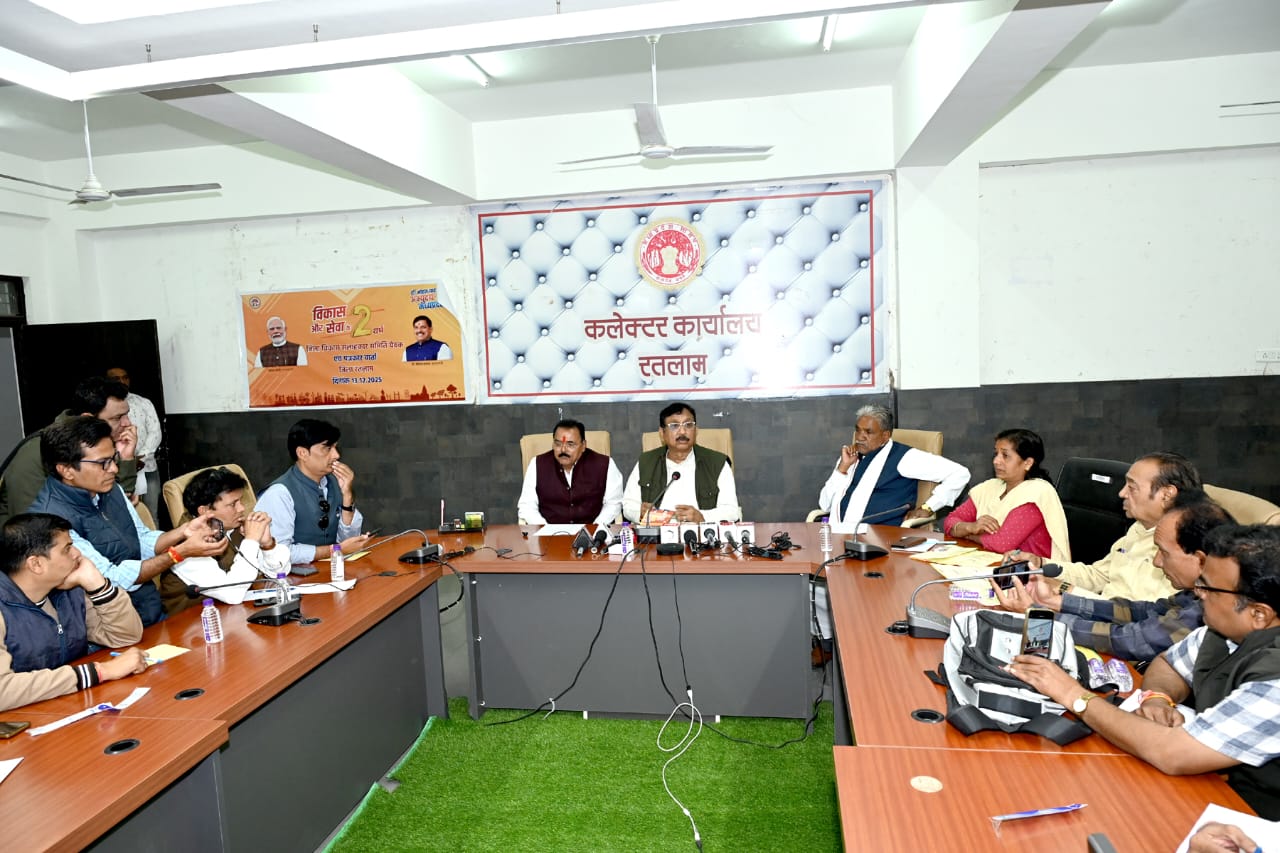 रतलाम 13 दिसंबर । मुख्यमंत्री डॉ. मोहन यादव के नेतृत्व में वर्तमान प्रदेश सरकार के 02 वर्ष पूर्ण होने के अवसर पर आज 13 दिसंबर को प्रभारी मंत्री एवं मध्यप्रदेश शासन जनजातीय कार्य विभाग, भोपाल गैस राहत पुनर्वास विभाग मंत्री डॉ. कुंवर विजय शाह ने कलेक्टर कार्यालय सभाकक्ष में जिला विकास सलाहकार समिति की बैठक एवं प्रेस कॉन्फ्रेंस में जानकारी देते हुए बताया कि मुख्यमंत्री डॉ. मोहन यादव के कुशल नेतृत्व में अभ्युदय मध्यप्रदेश के विकास और सेवा के 02 वर्ष आज पूर्ण हुए है। इन दो वर्षों में सरकार ने विकास, सुशासन और जनता के कल्याण को नई दिशा दी है। यह अवधि केवल कार्यकाल नहीं, बल्कि परिवर्तन और गति का युग रही है। मुख्यमंत्री ने “सरल शासन-सुगम शासन“ को वास्तविक स्वरूप दिया है। बैठक में प्रभारी मंत्री ने 2 वर्ष की उपलब्धियां पर आधारित पुस्तक एवं फोल्डर के बारे में भी जानकारी दी। बैठक में प्रभारी कलेक्टर डॉ शालिनी श्रीवास्तव ने पावर पाइंट के माध्यम से सरकार एवं जिले की दो साल की उपलब्धियों की जानकारी दी।