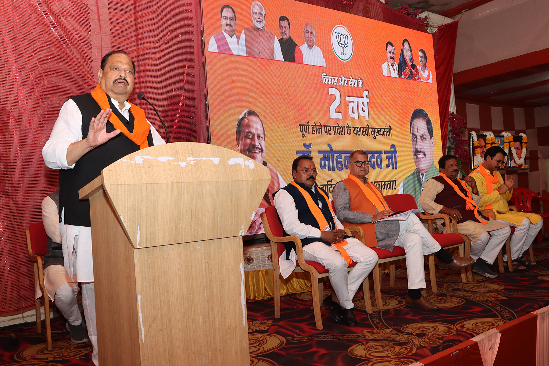 रतलाम, 21 दिसंबर। मुख्यमंत्री डॉ. मोहन यादव के नेतृत्व में भाजपा सरकार का 2 वर्षीय कार्यकाल पूर्ण होने पर रविवार को रंगोली सभागृह में भाजपा का विधानसभा सम्मेलन आयोजित हुआ। इसमें संभाग प्रभारी सुरेश आर्य, जिला प्रभारी प्रदीप पाण्डेय , कैबिनेट मंत्री चेतन्य काश्यप, महापौर प्रहलाद पटेल मंचासीन रहे। अध्यक्षता भाजपा जिलाध्यक्ष प्रदीप उपाध्याय ने की। सम्मेलन में देश के सबसे महत्वपूर्ण कार्य एसआईआर के साथ भाजपा के आगामी कार्यक्रमों पर चर्चा की गई। अतिथियों ने प्रदेश सरकार के 2 वर्षीय कार्यकाल की उपलब्धियों पर प्रकाश डाला। इस मौके पर केंद्रीय गृह मंत्री श्री अमित शाह द्वारा लोकसभा में दी गई जानकारी का प्रदर्शन भी किया गया।