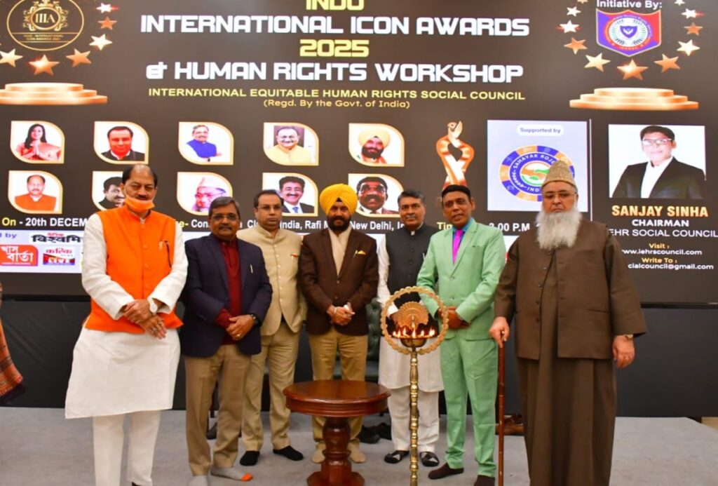 नई दिल्ली। अंतरराष्ट्रीय स्तर पर देश और दुनिया में पहचान बना चुकी संस्था इंटरनेशनल इक्विटेबल ह्यूमन राइट्स सोशल काउंसिल की ओर से आयोजित इंडो – इंटरनेशनल आइकन अवार्ड्स समारोह, सीजन-3 ने खूब चर्चा बटोरी और लोगों को अपनी ओर आकर्षित किया। ज्ञात हो कि नई दिल्ली स्थित कांस्टीट्यूशन क्लब के विशाल प्रेक्षागृह स्पीकर हॉल में आयोजित ह्यूमन राइट्स ट्रेनिंग वर्कशॉप और इंडो इंटरनेशनल आइकन अवार्ड समारोह, सीजन-3 में दो दर्जन से अधिक विभूतियों और प्रतिभाओं को सम्मानित किया गया। पंजाब ह्यूमन राइट्स कमिशन के सदस्य पद्मश्री जितेंदर सिंह शंटी ने मानव अधिकारों की बारीकियाँ ऑडिटोरियम में उपस्थित लोगों को समझाईं कई सवालों के जवाब भी उन्होंने दिए, सुप्रीम कोर्ट के वरिष्ठ अधिवक्ता अमन सिन्हा और बाबू लाल नारनौलिया ने कहा कि मानवाधिकार जीवन का एक ज़रूरी अंग है। इसे जानना आवश्यक है !! कार्यक्रम के मुख्य अतिथि विश्व हिंदू परिषद, इंद्रप्रस्थ प्रांत दिल्ली के अध्यक्ष श्री कपिल खन्ना जी ने सामाजिक गतिविधियों से जुड़े रहने की अपील सभी से की और ह्यूमन राइट्स के महत्व पर प्रकाश डाला। विशिष्ट अतिथि भाजपा दिल्ली प्रदेश के पूर्व अध्यक्ष, मध्यप्रदेश के सह प्रभारी मालवीय नगर के लोकप्रिय विधायक सतीश उपाध्याय जी ने बहुत ही सरलतापूर्वक मानव अधिकारों के विषय में जानकारी दी और ऐसे कार्यक्रम करते रहने की सलाह भी दी !! ऑल इंडिया इमाम ऑर्गेनाइजेशन के मुख्य इमाम डॉक्टर उमेर अहमद इलियासी सहाब ने भी अपने खुतबे में मानव अधिकारों की बात की और सभी अवार्डीस को मुबारकबाद पेश की। इंटरनेशनल इक्विटेबल ह्यूमन राइट्स सोशल काउंसिल के इंटरनेशनल चेयरमैन संजय सिन्हा ने कहा कि हमारा मकसद देश और दुनिया के लोगों को ह्यूमन राइट्स के प्रति जागरूक करना है। यही वजह है कि हम लगातार ह्यूमन राइट्स ट्रेनिंग वर्कशॉप्स और सेमिनार भी आयोजित कर रहे हैं। इसी के बीच इंडो इंटरनेशनल आइकन अवार्ड्स भी दिए जाते हैं, ताकि देश दुनिया में उल्लेखनीय कार्य कर रहे लोगों को सामने लाया जा सके।