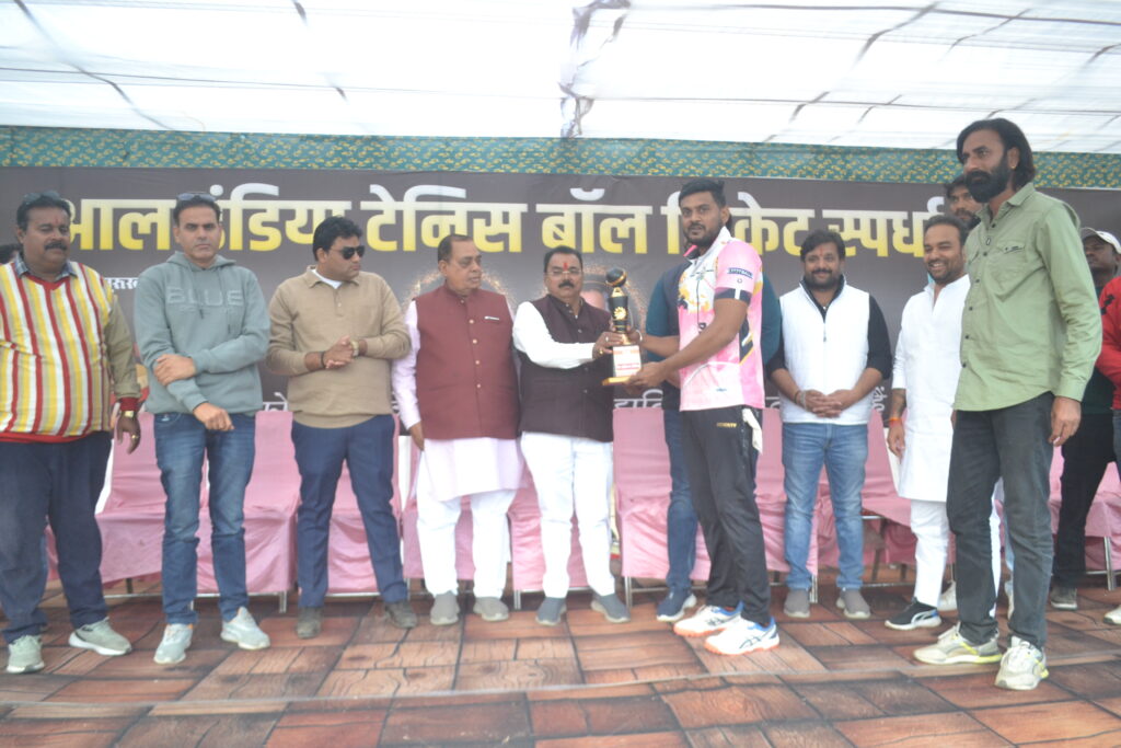 विजेता टीम भाविन 11 ग्वालियर को ₹2,00,000 नगद पुरस्कार एवं चमचमाती ट्रॉफी प्रदान की गई। उपविजेता अंबर क्रिकेट क्लब को ₹1,00,000 नगद पुरस्कार एवं ट्रॉफी दी गई। पुरस्कार वितरण भाजपा जिला अध्यक्ष प्रदीप उपाध्याय द्वारा किया गया।