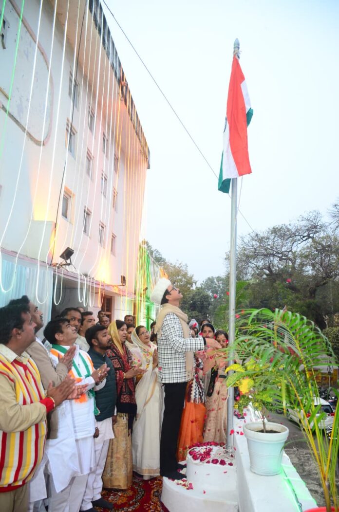 रतलाम 27 जनवरी । 26 जनवरी 2026 गणतंत्र दिवस के अवसर पर निगम महापौर प्रहलाद पटेल ने निगम अध्यक्ष श्रीमती मनीषा शर्मा, निगम आयुक्त अनिल भाना, महापौर परिषद सदस्य, पार्षद व निगम अधिकारी एवं कर्मचारियों के साथ प्रातः 7.30 बजे निगम भवन पर ध्वजारोहण किया।