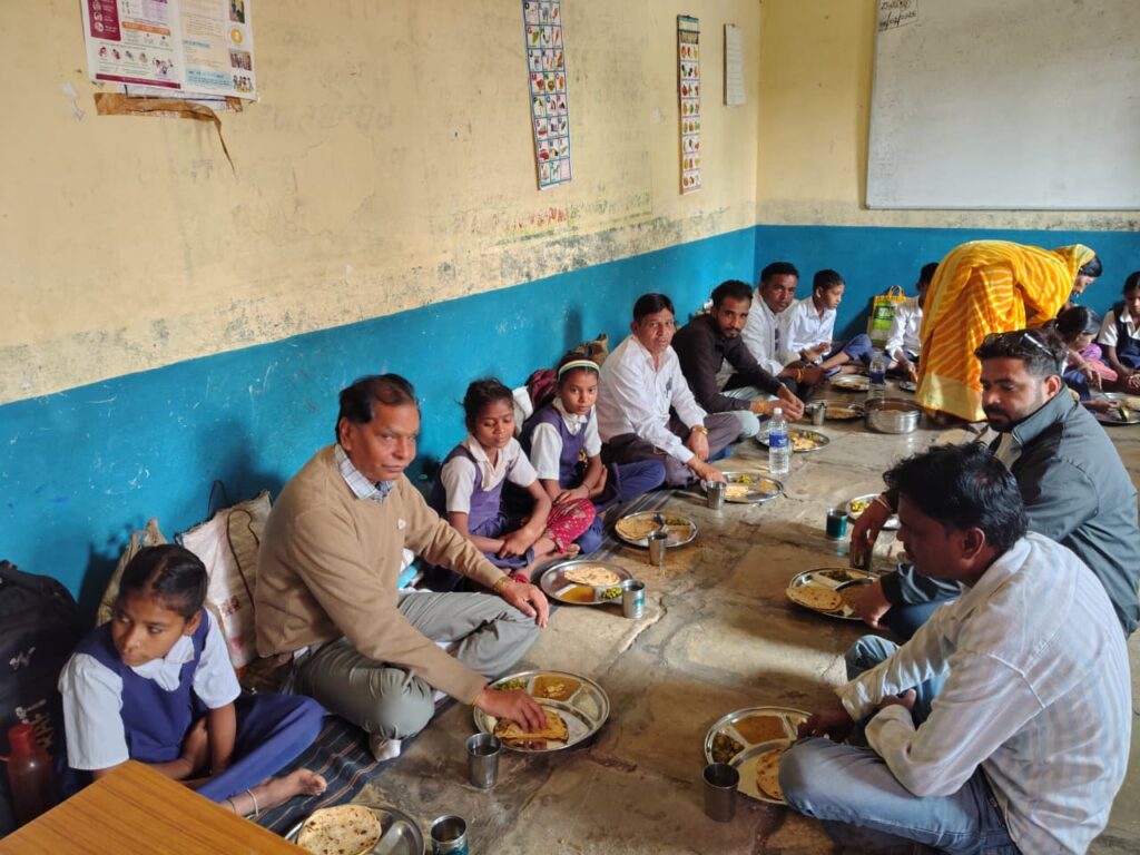 नोडल अधिकारियों ने भ्रमण के दौरान स्कूल/आगनवाडी केन्द्र के बच्चों के साथ भोजन कर भोजन की गुणवत्ता का परीक्षण किया।