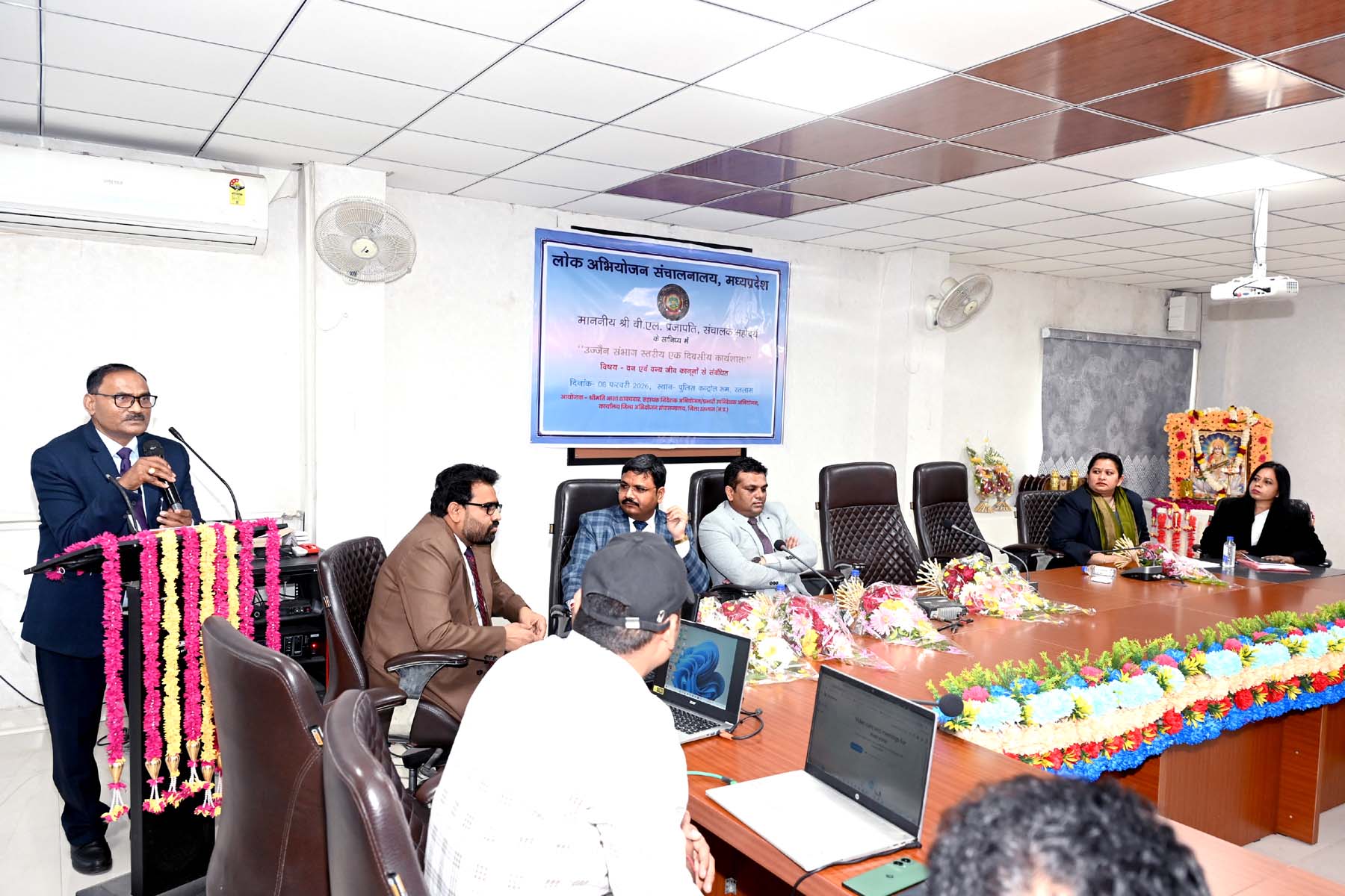 रतलाम 09 फरवरी । जिला अभियोजन संचालनालय रतलाम द्वारा लोक अभियोजन संचालनालय म.प्र. भोपाल के मार्गदर्शन में वन अधिनियमो पर एक दिवसीय संभागीय कार्यशाला आयोजित की गई जिसमें मुख्य अतिथि संचालक लोक अभियोजन श्री बी.एल. प्रजापति, विशेष न्यायाधीश महोदय रतलाम श्री आशीष श्रीवास्तव, अपर सत्र न्यायाधीश महोदय रतलाम श्री निर्मल मण्डोलिया, न्यायिक मजिस्ट्रेट प्रथम श्रेणी रतलाम श्री जितेन्द्र रावत, तथा जिला वनमंडला अधिकारी श्रीमती अनुभा त्रिवेदी तथा सेवानिवृत्त उप संचालक अभियोजन श्री कैलाश व्यास उपस्थित रहे।